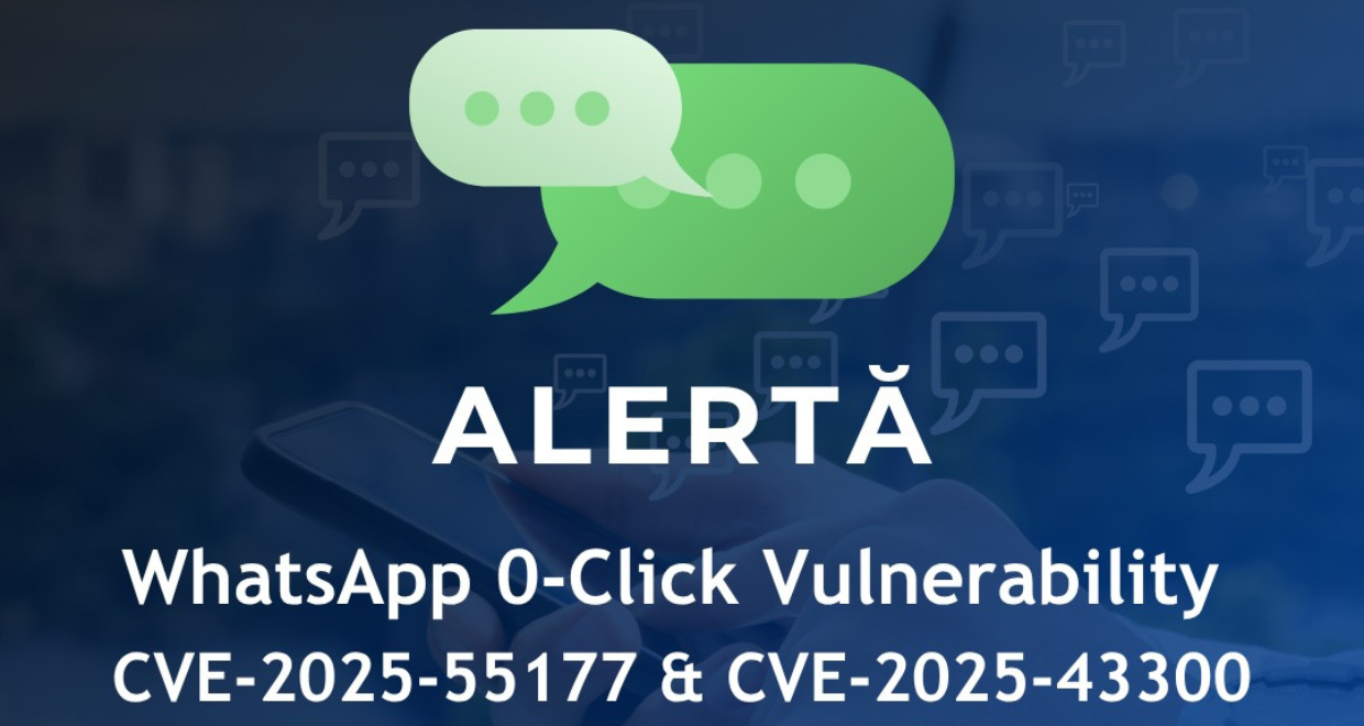 Exploatarea vulnerabilităților CVE-2025-55177 și CVE-2025-43300 descrie perfect un model de atac extrem de eficient, respectiv o problemă la nivelul unei aplicații larg răspândite, cum este WhatsApp, folosită ca vector de livrare, coroborată cu o vulnerabilitate a sistemului de operare.