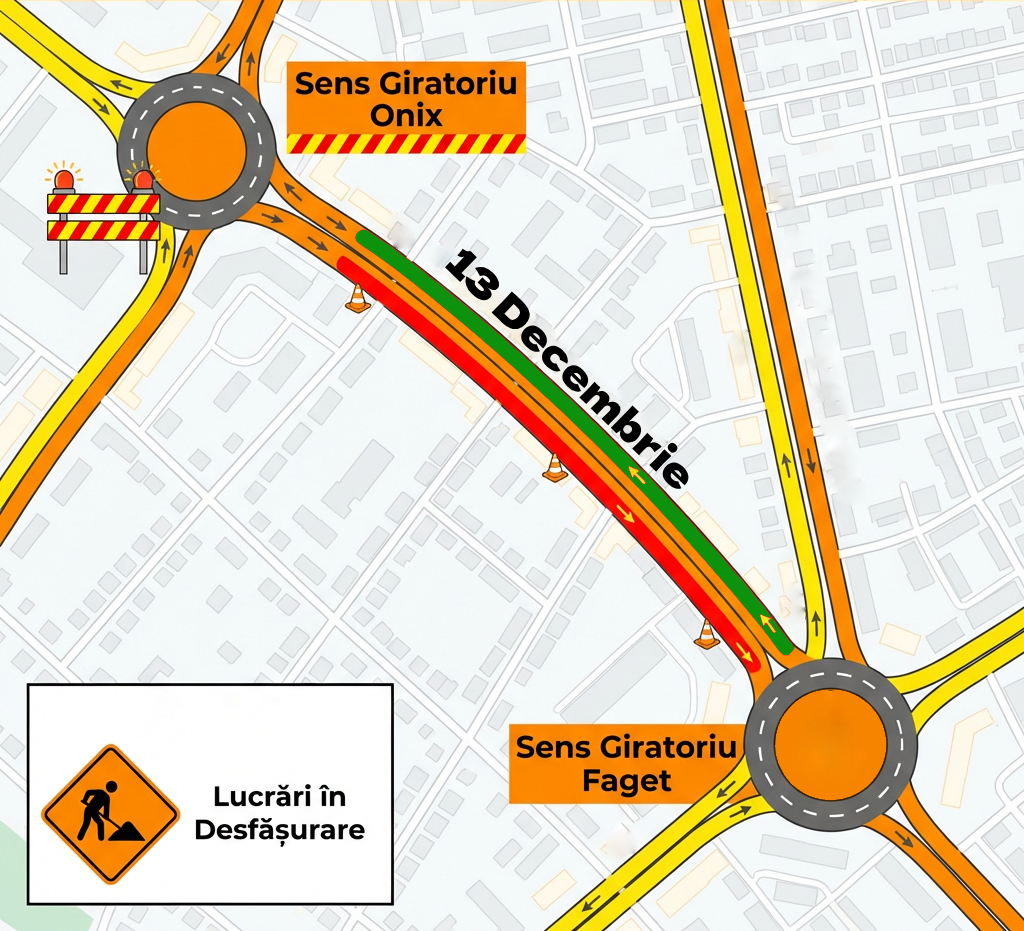 De mâine, 18 martie 2026, vor începe lucrările de reabilitare a rețelei de apă pe strada 13 Decembrie, între sensul giratoriu de la Onix și cel de la Făget.