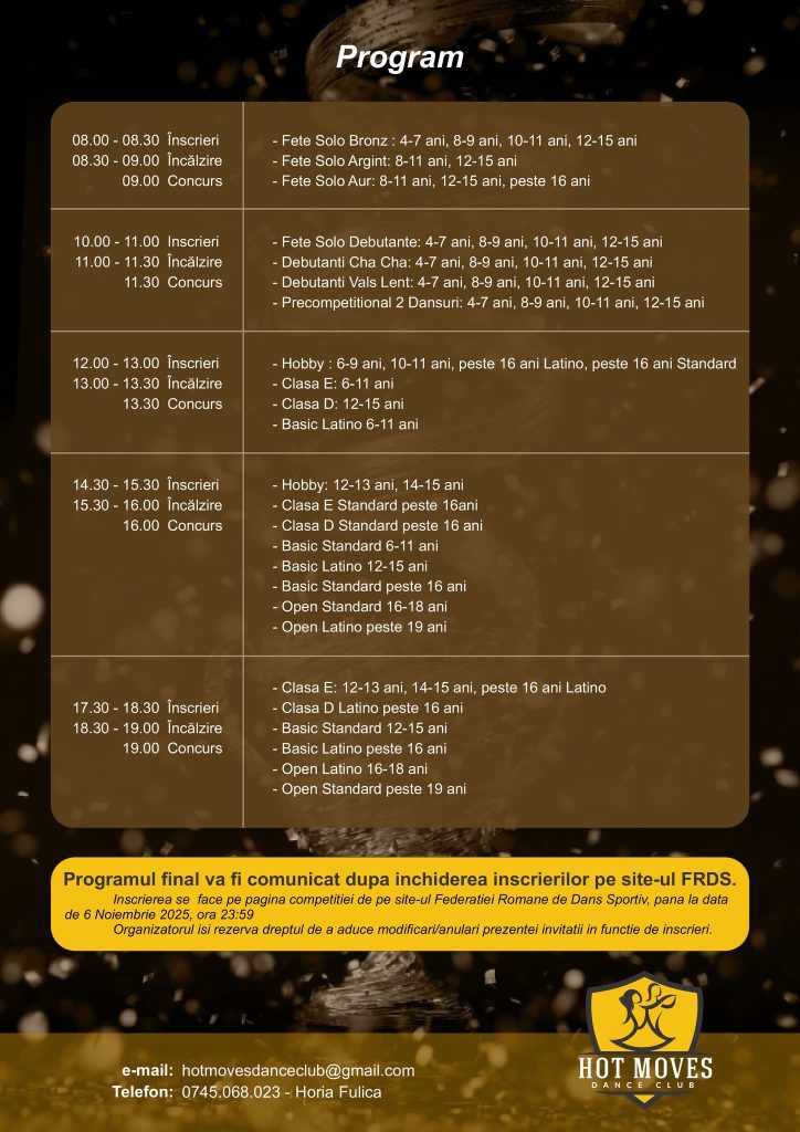 Evenimentul, organizat de Asociaţia Club Sportiv Hot Moves, reuneşte sute de sportivi din toate colțurile țării, dar și de peste hotare, într-un cadru competitiv și totodată festiv în care pasiunea pentru dans și performanța sportivă se întâlnesc pe ringul de dans.