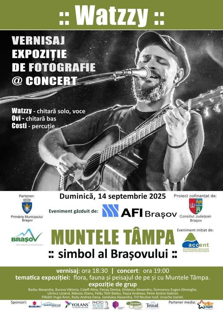 De la ora 19:00 în cadrul vernisajului expoziției de fotografie „Muntele Tâmpa – simbol al Brașovului, Watzatka Robert aka ”Watzzy” alături de doi camarazi, vor cânta și ne vor încânta cu ritmuri de funk, blues și rock.